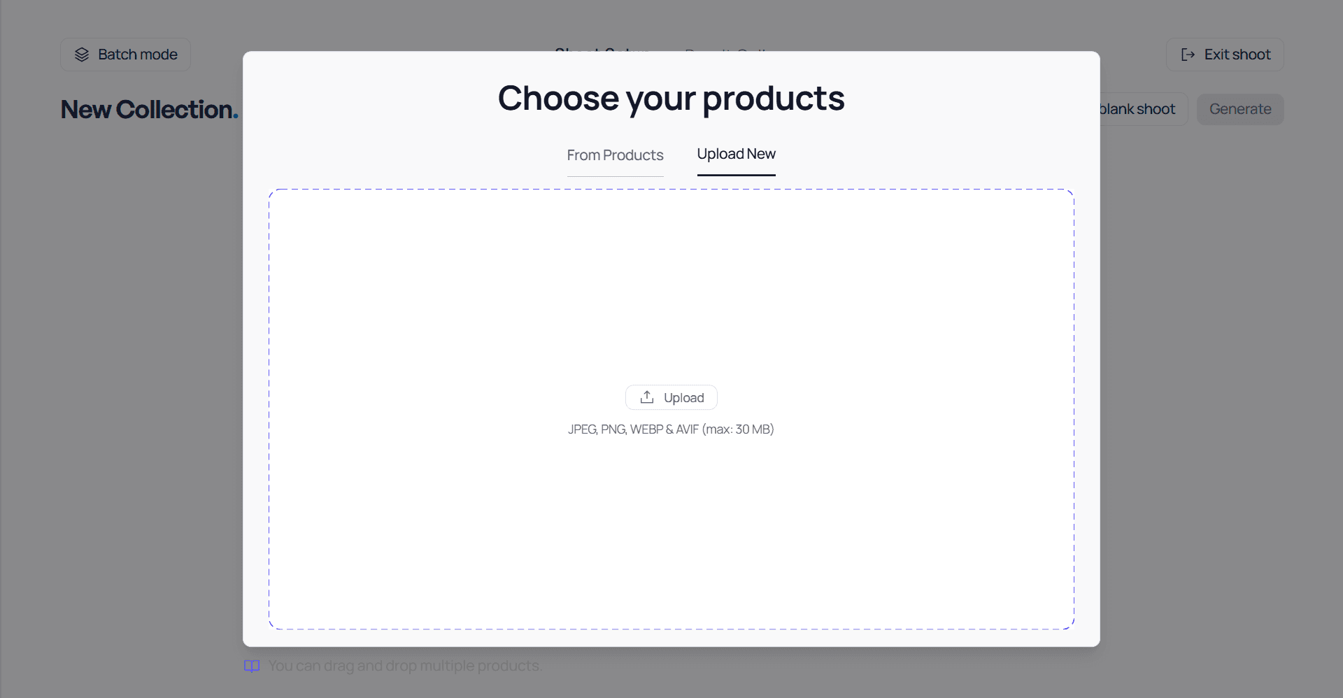 Or click on Upload New to select one or several products on your device.