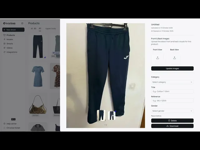 Introducing our Packshot Cleaning Workflow, a powerful new AI feature that automatically cleans and prepares your packshots. Whether you need ghost mannequin or flatlay-ready images, Veeton now helps you create polished, ready-to-use visuals in just a few clicks.